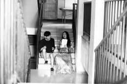 李凯旭正在和社团合伙人李珍一起背诵台词。