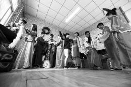 又是一个星期五下午,“好莱屋”演绎社负责人李凯旭和小伙伴们在尝试新的表演服。