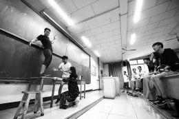 课余时间,在阶梯教室进行反复排练,就是为了在演出时可以更加收放自如。