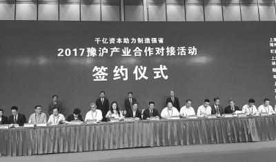 5月24日至26日,2017豫沪产业合作对接活动在上海举行,这是继2000年、2015年之后举办的第三次豫沪战略合作活动。其间,上海市委常委、常务副市长周波等会见省政府代表团一行,与张维宁副省长就进一步深化豫沪合作深入交流了意见;省工信委会同省政府金融办、省政府驻上海办事处组织举办了豫沪产业合作暨千亿资本助力制造强省专题推介会、五大主导产业专题对接会和豫商合作论坛;省教育厅、省农业厅分别与上海市教委、农委签订了行业合作协议;两地达成合作项目219个、签约总金额1203亿元。豫沪合作开展十多年来,从引进项目到产融结合,从单向承接到互利共赢,从产业合作到全方位牵手,豫沪合作带来了新机遇,开拓了发展新空间。