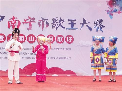 本报讯(记者 黄璐燕)展示壮乡原生态民歌魅力,促进传统文化传承发展。日前,由南宁大明山风景旅游区管委会与南宁民族文化艺术研究院联合主办的“2017南宁市歌王大赛暨大明山六月歌圩”活动在大明山大门区举行。来自武鸣、马山、上林等县(区)的民间山歌手和实力唱将齐聚一堂开怀亮嗓,为争夺歌王桂冠轮番上台打擂。经过轮番PK,最终,韦玉英、赵翠艳、黄宝利、谢春先四名山歌手获得“歌王称号”。