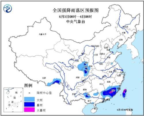 多地暴雨蓝色预警。据中央气象台网站消息,中央气象台6月3日6时继续发布暴雨蓝色预警:预计,6月3日08时至6月4日08时,甘肃南部、陕西西南部、四川东北部、广西北部、广东北部和东南部、江西南部、福建中部和南部等地的部分地区有大到暴雨,福建西南部、广东东北部局地有大暴雨(100~150毫米)。