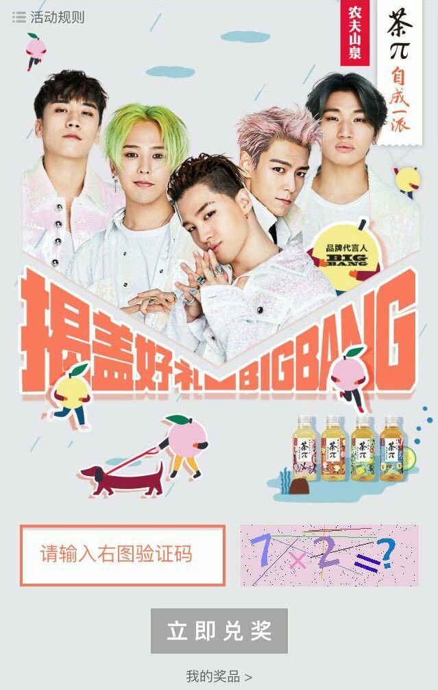 原来的Bigbang五人组代言 农夫山泉茶π