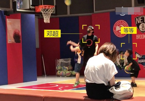邓超陪等等投篮。