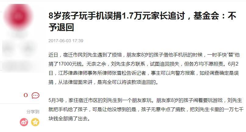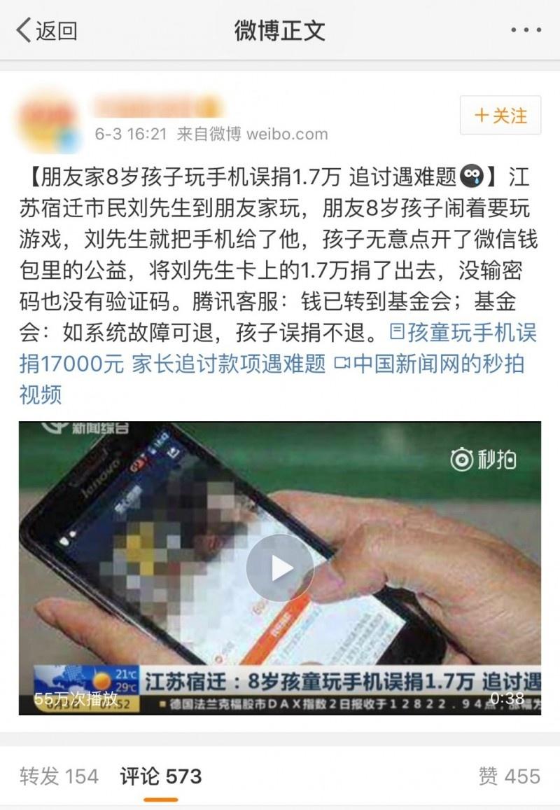 从昨天中午开始,网上出现大量关于“孩子玩手机误捐1.7万元 基金会:误捐不退”的报道,给公众造成一定的疑惑和困扰。中国扶贫基金会高度重视此事,紧急进行调查与核实,现向社会公布处理结果和经过。
