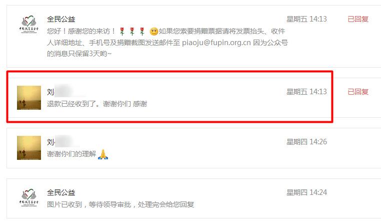 我会互联网捐赠负责人主动联系刘先生,再次详细解释了退款要求和流程。刘先生随后提交了新的证明材料。鉴于刘先生补充了新的材料以及本人对事件详细的描述,我会互联网捐赠负责人通过了退款流程;