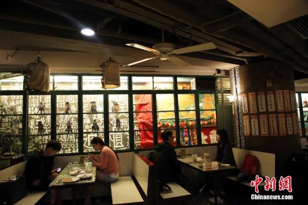 6月4日,香港都爹利街内的中式星巴克咖啡店,保留了一部分香港老冰室装潢。 中新社记者 洪少葵 摄