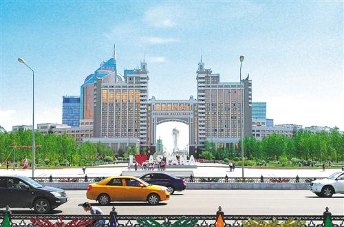 图② 阿斯塔纳市中心街景。