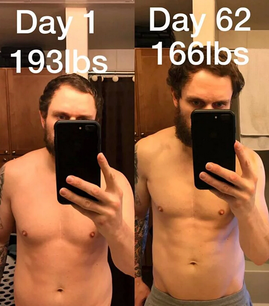 他的第一个此类快速减重实验为期30天,期间他50%的卡路里摄入都来自冰激凌。尽管工作需要导致他没能维持更长,这30天期间他依然维持了每周2磅(约1.8斤)的减重速度,并且还通过在健身房锻炼塑出了腹肌。这之后他还试过30天只吃垃圾食品,依然维持了每周2磅的减重速度,并让腹肌更加明显了。