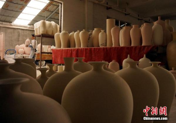 在景德镇市陶阳北路的一幢房屋内,千余平方米被分隔成多个小间,其中堆满各式器形的瓷胎泥坯,多位工人在房间内来回忙碌。反复揉捏的一堆泥土,经工匠拉坯、利坯,制成大小不一的圆器、镶器或瓷板,再经画工绘以写意青花或工笔重彩,置于窑炉内高温烧制成瓷。从泥土到瓷器,千年制瓷工艺浓缩在这个并不算宽敞的作坊内,这种或大或小的作坊遍布景德镇,陶瓷文化的魂与根正深系于此,器形、釉料、窑炉以及绘画风格可以推陈出新,千变万化,但作坊内的学徒、画工世代坚守、传承,千年窑火不曾熄灭。图为6月9日,探访景德镇民间陶瓷作坊,见证千年陶瓷文化的民间传承。 王昊阳 摄