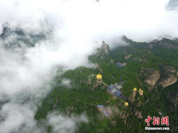 6月9日,道教圣地河南洛阳老君山现云海奇观,云雾蒸腾此起彼伏,峰峦叠嶂隐没在云雾间若隐若现,海拔2000余米的绝壁道观群悬浮在云雾之上,美似仙境天宫。