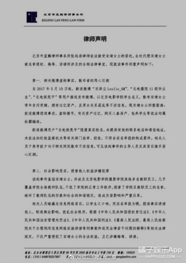 通过律师发表声明,表示“资产过亿、包养学生”等都是杜撰!