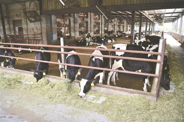 海安奶牛在吃秸秆粉碎青饲料。 顾华夏 黄进军摄
