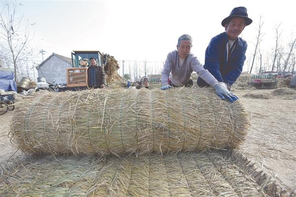 东海农民利用秸秆加工草帘、草毡等。 张正友摄