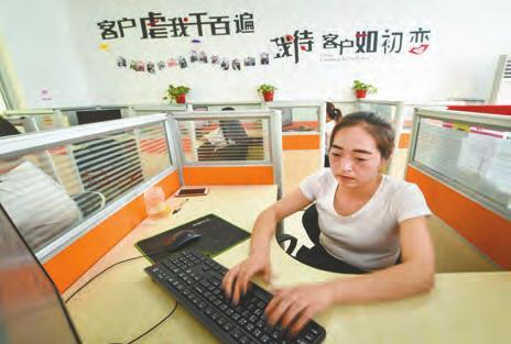 在哎哟喂电子商务有限公司客服部,网店客服正在键盘上飞速敲击,为客户提供精准服务。