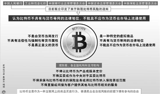 2013年,比特币一度从1200元涨至约8000元,当年末,五部委联合下发《关于防范比特币风险的通知》,明确说明:“虽然比特币被称为货币,但由于其不是由货币当局发行,不具有法偿性与强制性等货币属性,并不是真正意义的货币。从性质上看,比特币应当是一种特定的虚拟商品,不具有与货币等同的法律地位,不能且不应作为货币在市场上流通使用。”