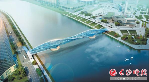 【寓意】该方案从两江所组成的城市基因出发进行构思,基因密码DNA为螺旋双链线结构,也正如湘江和浏阳河的交织、盘旋;古人按星宿分野,与社宿“长沙星”对应的这片地方就叫长沙,桥梁横截面采用“长沙星”形态,融入水流滚滚向前的态势,形成星云流转的设计主题。江水驱动,星云流转,模拟出湘江、浏阳河波澜壮阔、滚滚向前的动态,也象征城市的朝气蓬勃。