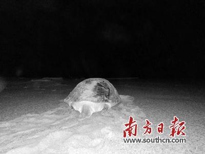 15日,笔者从广东惠东海龟国家级自然保护区管理局(下称海龟保护区)获悉,该保护区14日晚迎来一头绿海龟上岸,产卵138颗,这是保护区今年首次迎来海龟上岸产卵,工作人员全程记录产卵经过。