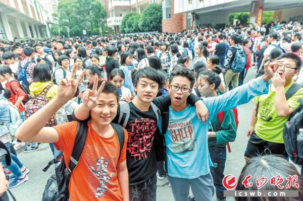 16日,长郡芙蓉中学考点,考生向记者做手势表达自信。长沙晚报记者 陈飞 摄