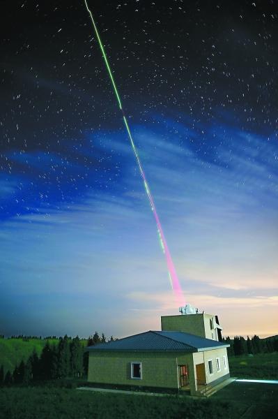6月15日,在乌鲁木齐南山观测站,“墨子号”量子科学实验卫星过境,科研人员在做实验(合成照片)。