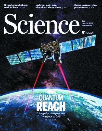 15日发布的国际权威学术期刊《科学》杂志封面上,“墨子号”从星空向地面发出两道光,宛如两条长腿跨出一大步,也象征量子通信向实用迈进一大步。《科学》杂志在一份简介中将这项中国科学家独立完成的工作称为“一项里程碑式的研究”。论文审稿人认为,这一成果是“兼具潜在实际应用和基础科研重要性的重大技术成就”“毫无疑问将在学术界和广大社会公众中产生非常巨大的影响”。