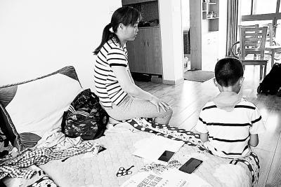 邹女士看着不懂事的儿子很无奈