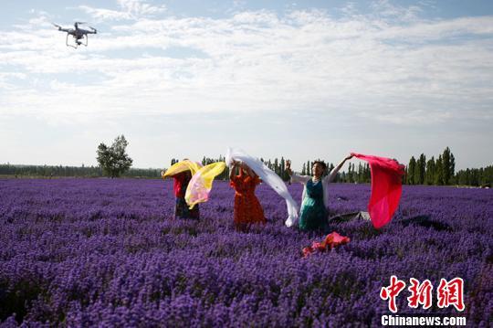 记者17日在解忧公主薰衣草农场看到,千亩薰衣草园形成紫色的花海,香气扑鼻,令人陶醉,疆内外游人如织。女士们大多为之倾倒,在花海中穿上花裙或者舞动长长的纱巾,毫不遮掩地表达欢愉和浪漫的心情。