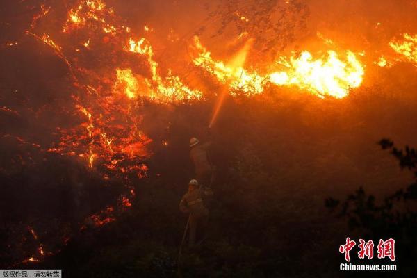 当地时间6月18日,葡萄牙中部地区Fato镇附近,消防员们正在奋力扑灭森林大火。近日,葡萄牙中部地区发生森林大火,截至18日,已造成至少62人死亡,还有数十人受伤。
