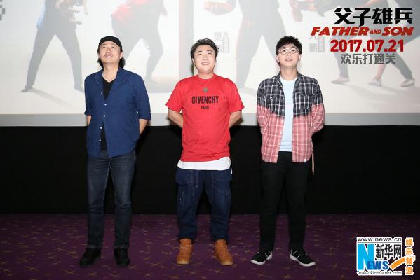 由大鹏监制兼主演,导演袁卫东、编剧苏亮联袂打造,范伟、张天爱、乔杉共同主演的暑期必看喜剧电影《父子雄兵》将于今年7月21日暑期档上映。6月19日,《父子雄兵》举办了传媒大奖媒体场观影活动和业内观影活动。映后,导演袁卫东、大鹏、乔杉现身,乔杉“控诉”大鹏“太偏心”,希望今后也给自己多加感情戏。当天放映时,现场爆笑106次,反响热烈,“上影节看不够求提档”、“不是纯粹搞笑,还有对社会现实的嘲讽,大鹏真是把喜剧这条路走开了”。