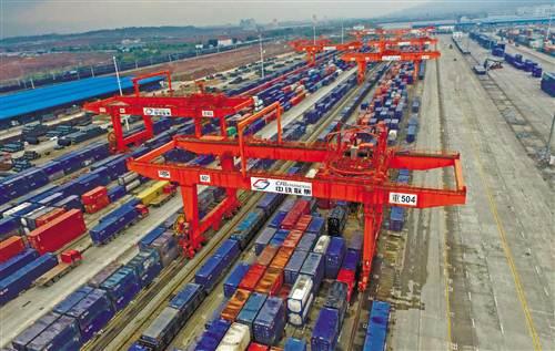 沙坪坝区拥有团结村铁路集装箱中心站和兴隆场特大型铁路编组站,是渝新欧、渝桂新等国际贸易大通道起始站,重庆铁路口岸所在地。作为全市交通枢纽、铁路口岸、保税中心“三个三合一”开放平台之一,及重庆内陆开放高地建设的重要标志,沙坪坝区西部物流园将依托陆路国际运输枢纽和商务聚集区优势,构造辐射亚欧的“铁水空公”多式联运体系,连接“一带一路”和长江经济带,拓展与沿线国家合作发展的“高度”、“深度”和“广度”,推动商流、物流、资金流、人流、信息流等要素的自由流动,着力打造陆路国际运输枢纽和开放型商贸服务区。