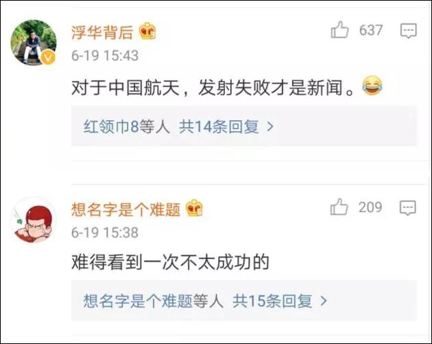 而在得知中星9A 广播电视直播卫星因火箭三级故障未能进入预定轨道之后,很多网友表示,“难得看到一次发射失败,这也算是有生之年系列了。”