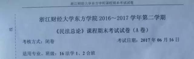 昨天,浙江财经大学东方学院法学专业的学生就碰上了“万一”——《民法总论》的期末考试试卷,竟通篇引用《人民的名义》!!!