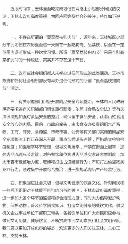 真的如此吗?这不,广西玉林市委宣传部出来辟谣啦:所谓“荔枝狗肉节”系本地民俗,并非官方主导的地方节庆,因此不存在“停办”一说。此外,就“叫停狗肉交易”一事,玉林市委宣传部称,未听说也未发布这一政策,目前尚不清楚网传消息来源。