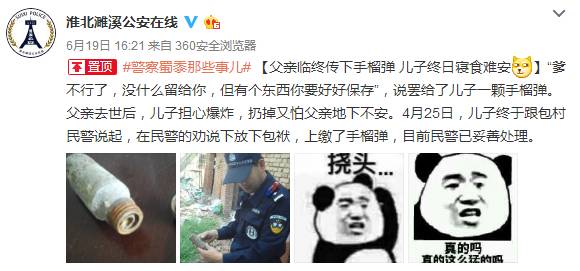 最后理智 终于战胜了情感, 男子终于跟包村民警说起这件事, 在民警的劝说下放下包袱,上缴了手榴弹, 目前民警已妥善处理。
