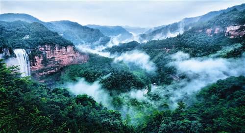 云雾袅绕,青山环抱的“华夏第一高瀑”——四面山望乡台瀑布