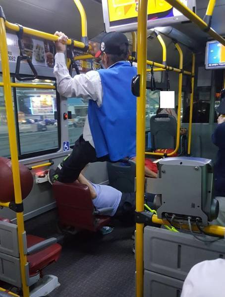 据海外网6月21日报道,韩国一名年约70岁的大爷,疑因不满年轻人占着公交车的爱心专座,双手吊在头顶上方的栏杆,双脚飞起直踹座位上的年轻人。这一动作被旁人拍下,引发巨大争议。