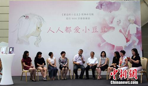 中新网北京6月22日电(上官云)不少小读者可能会听过这样的故事:淘气的小豆豆被学校退学后来到巴学园。在小林校长的引导下,一般人眼里“怪怪”的她逐渐变成了一个大家都能接受的孩子……上述故事就出自日本著名作家黑柳彻子《窗边的小豆豆》。21日下午,为庆祝该书简体中文版发行总量突破1000万册,新经典文化股份有限公司(简称新经典文化)在北京举办答谢会。知名教育家孙云晓、儿童文学作家伍美珍、主持人金龟子(刘纯燕)等嘉宾共同探讨了“教育”“爱”等系列话题。