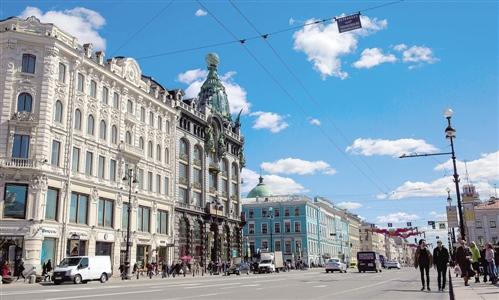 这是俄罗斯圣彼得堡涅瓦大街。 圣彼得堡位于波罗的海芬兰湾东端的涅瓦河三角洲,是俄罗斯历史文化名城,以精美建筑闻名于世。该城于1703年由彼得大帝奠基,故称圣彼得堡。 吴 壮摄