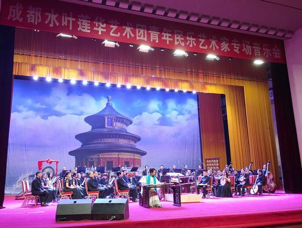 6月24日下午,为庆祝即将到来的党的96周年华诞,缅怀为共产主义远大理想英勇奋斗、壮烈牺牲的共产党人,一场“国乐蜀韵·水叶莲华艺术团青年民乐艺术家专场音乐会”在成都举行。