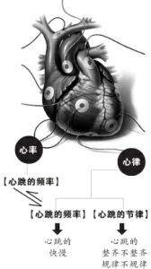 "心律"和"心率",这两个词读音一模一样,而且看上去意思也差不多。实际上,"心律"是心脏在收缩、舒张过程中以一定范围的频率形成的有节奏、有规律的跳动过程,它包含两部分内容,即心跳的频率和心跳的节律,频率是心跳的快慢,节律是心跳的整齐不整齐、规律不规律。"心率"只表示心跳的频率,比起"心率"来,"心律"是对心跳情况的更全面的描述,两者不能完全混为一谈。