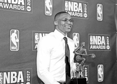 本报讯 首届NBA颁奖典礼昨天在纽约举行,在最受瞩目的常规赛MVP争夺中,威斯布鲁克力压哈登和莱昂纳德,职业生涯首次获此殊荣。