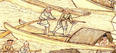 清徐扬《姑苏繁华图》中头戴斗笠的船民