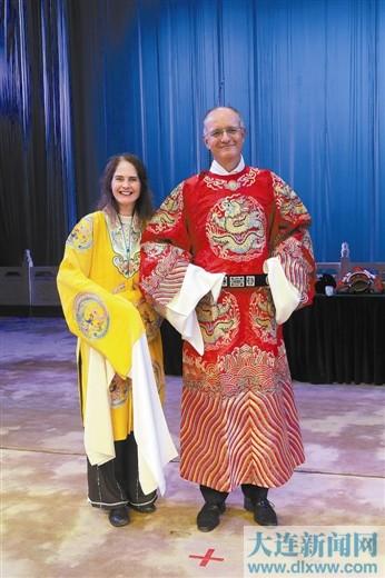 穿上京剧戏服的市长伉俪。