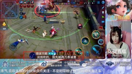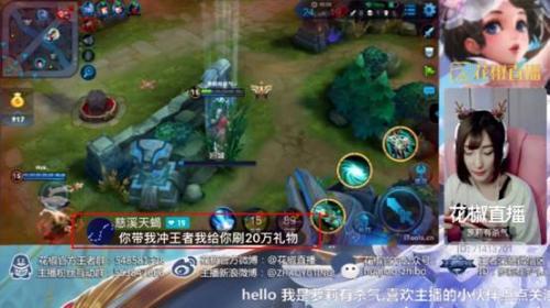 借着《王者荣耀》的超高热度,手游主播纷纷逆袭传统PC游戏主播。最近一名昵称为“萝莉有杀气”的花椒游戏女主播在打《王者荣耀》时偶遇土豪“慈溪天蝎”,天蝎称:“明天赛季更新,你带我一天冲王者,我给你刷20万礼物。”并打赏了价值2万元的礼物作为定金。
