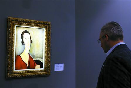 观众在欣赏亚美迪欧·莫迪利安尼作品《汉卡·扎博罗夫斯卡夫人》。 新华社 图