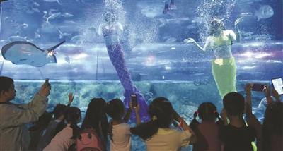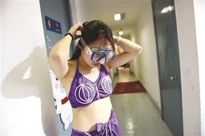 憋一口气下水表演1分钟,然后出水,再下水,每天上午9点半和下午1点半,印悦都要扮演“美人鱼”,在5米深的人造海水下分别游上8分钟,还要表演翻筋斗、水中飞吻、向观众招手、与王子互动等“秀”。一晃3年,扣除轮休,估算一下,她这条“美人鱼”下水游了超过1000次。