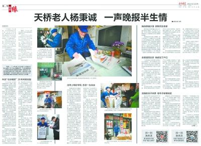 2015年3月,本报曾以《天桥老人杨秉诚 一声晚报半生情》为题,报道过杨秉诚老人半生坎坷,以一声嘹亮的吆喝——“晚报”,成为天桥路口“地标”的故事。