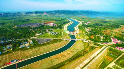 从高空俯瞰南水北调中线工程渠首。 资料图片