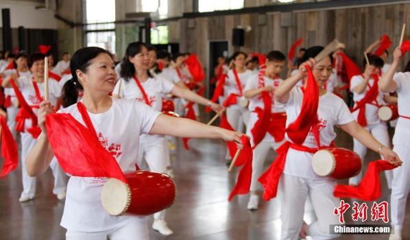 当地时间7月1日下午,在华人社团主导下,加拿大从东至西八座大城市近2000人同时击鼓,庆祝加拿大联邦成立150周年。图为在加拿大首都渥太华的击鼓会场,来自侨社的参加者们打起中国腰鼓。加拿大从东海岸至西海岸的哈利法克斯、蒙特利尔、渥太华、多伦多、温尼伯、里贾纳、卡尔加里、温哥华八大城市、不同族裔的参加者均同步击响鼓点。中新社记者 余瑞冬 摄