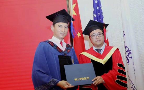 人民网北京7月4日电 (艾雯) 7月1日,北京大学光华管理学院EMBA硕士毕业典礼举行,现场出现了一张特殊的面孔,今年47岁的吴奇隆顺利毕业获得硕士学位。身穿学士服的他和同学一起毕业合照,骑共享单车尽享美好的校园时光。